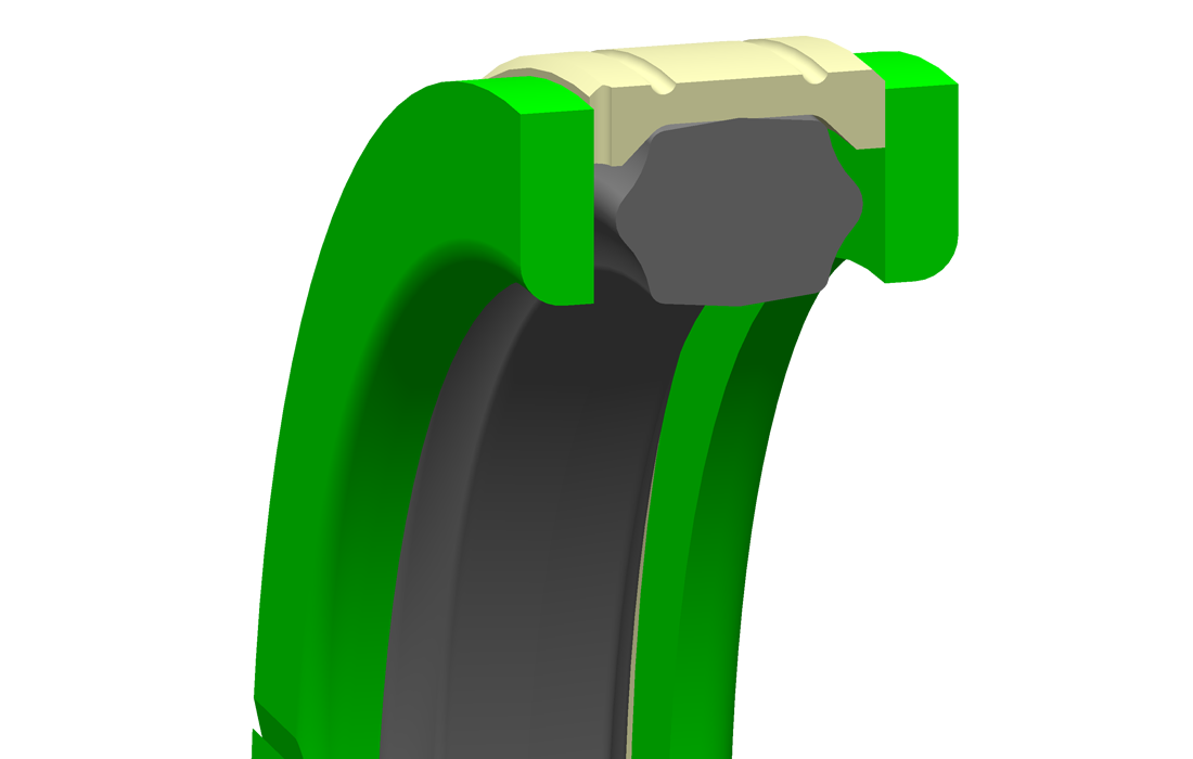 A self-actuaring and pressure-activated hydraulic seal that optimizes cap seal performance. The cap seal design results in low breakout and running friction and minimal leakage over an extended service life, making this seal design ideal for dynamic service. The PTFE-type sealing element and advanced-design elastomeric energizer provide optimum radial squeeze and evenly distributed radial loading. The addition of circumferential cap grooves will improve the lubrication and reduce outboard leakage.