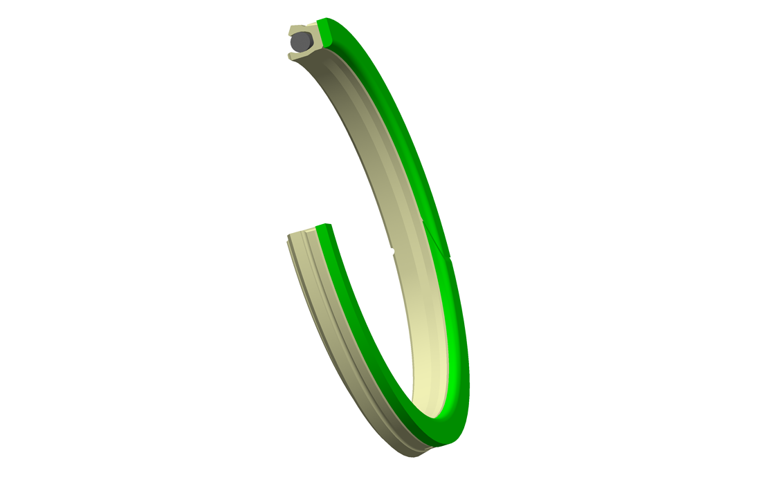 Generally used as a primary rod seal in dynamic tandem systems, Greene Tweed’s new ESE design is available for use in either one or two backup gland widths. The ESE provides superior performance in tandem seal applications. Its unidirectional, “self-venting” design is complemented with a high modulus backup ring that is installable into “closed-groove” configurations for most sizes (unlike that of many standard, metal-spring-energized [MSE®] types). Along with the “self-venting” capability, the ESE design offers low operating friction along a wide operational temperature range. The seal assembly itself consists of an extremely durable, PTFE jacket with an elastomeric energizer and high modulus backup ring.
